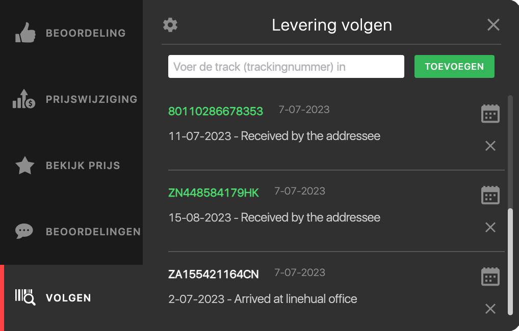 Bewerkbare lijst van gevolgde bestellingen