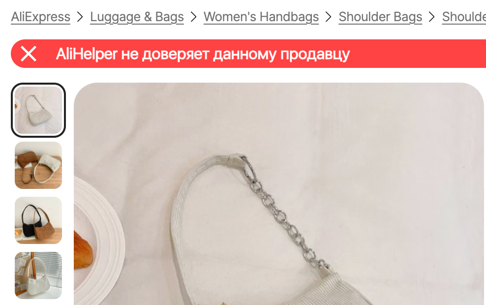 Рейтинг каждого магазина указан на фото товаров. Это поможет избежать ненадежных продавцов еще на стадии поиска